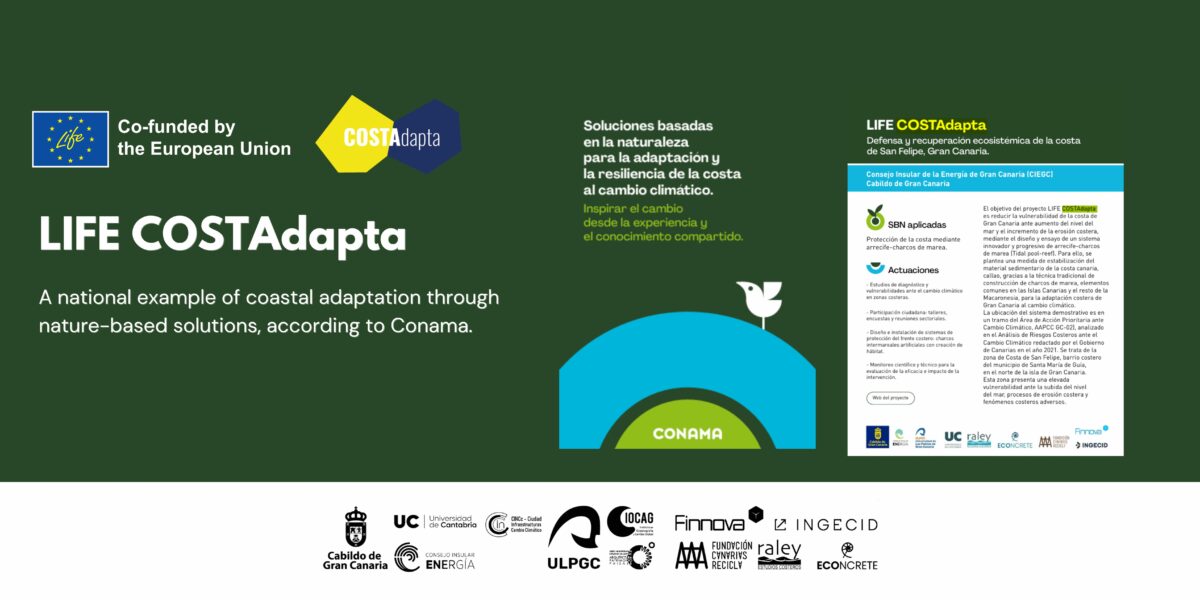 With a total budget of €3,409,864 and a duration of 84 months, LIFE COSTAdapta is co-funded at 60% by the European Union’s LIFE Programme. The project is coordinated by the Island Energy Council of Gran Canaria (CIEGC), with the participation of Finnova Foundation, the University of Las Palmas de Gran Canaria (ULPGC), the University of Cantabria (UC), ECOncrete, INGECID, Raley Estudios Costeros, and the Canary Islands Foundation for Recycling and Sustainable Development.
