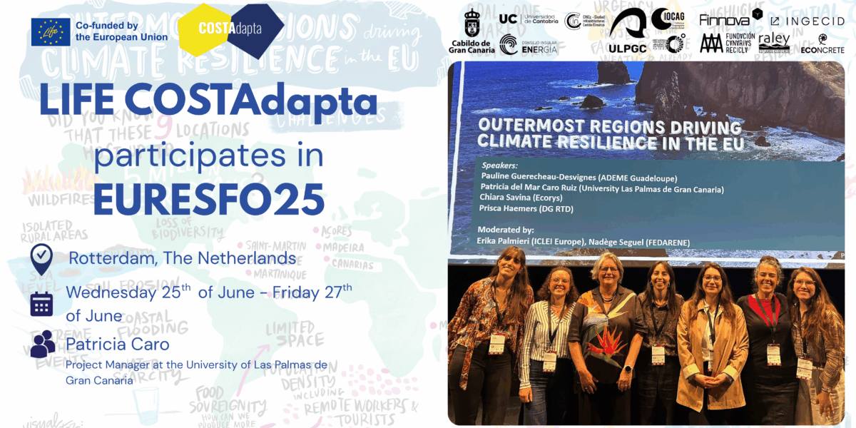 Brussels, 1 July 2025. Patricia Caro, project manager at the University of Las Palmas de Gran Canaria, took part in the 12th edition of the European Urban Resilience Forum (EURESFO25), held from Wednesday 25th of June to Friday 27th of June in Rotterdam, the Netherlands. Representing theLIFE COSTAdaptaproject, she presented to an audience of experts in urban resilience, climate adaptation and risk management, the innovative solutions being developed in Gran Canaria.