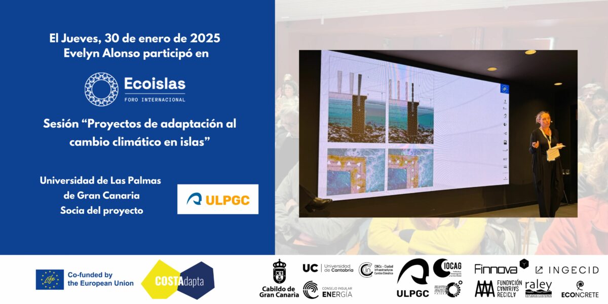 Gran Canaria, 30 de enero de 2025 – El proyecto LIFE COSTAdapta ha sido protagonista en el Foro Internacional Ecoislas el pasado 30 de enero en Gran Canarias. Evelyn Alonso, doctora en Arquitectura y profesora de la Universidad de Las Palmas de Gran Canaria, presentó con éxito los avances y enfoques clave de esta iniciativa pionera en la adaptación costera al cambio climático. La ponencia despertó un gran interés, superando el aforo previsto de 78 personas y dejando asistentes de pie, lo que demuestra el creciente compromiso con soluciones sostenibles para la protección del litoral.