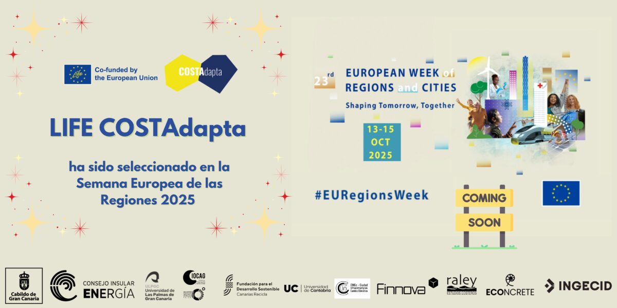 Bruselas, 29 de septiembre de 2025. – El proyecto europeo LIFE COSTAdapta ha sido seleccionado para formar parte de la Semana Europea de las Regiones y Ciudades 2025 (EURegionsWeek), el mayor evento anual de la Unión Europea dedicado al desarrollo regional y urbano.